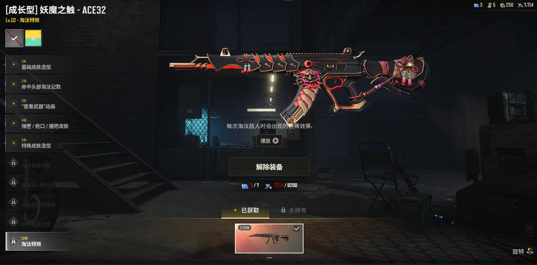 ⑤级妖魔之触ACE✅鎏金王朝M762✅朱雀之灵AKM✅雪国风光M4✅破碎元素mini✅彩虹之上SLR