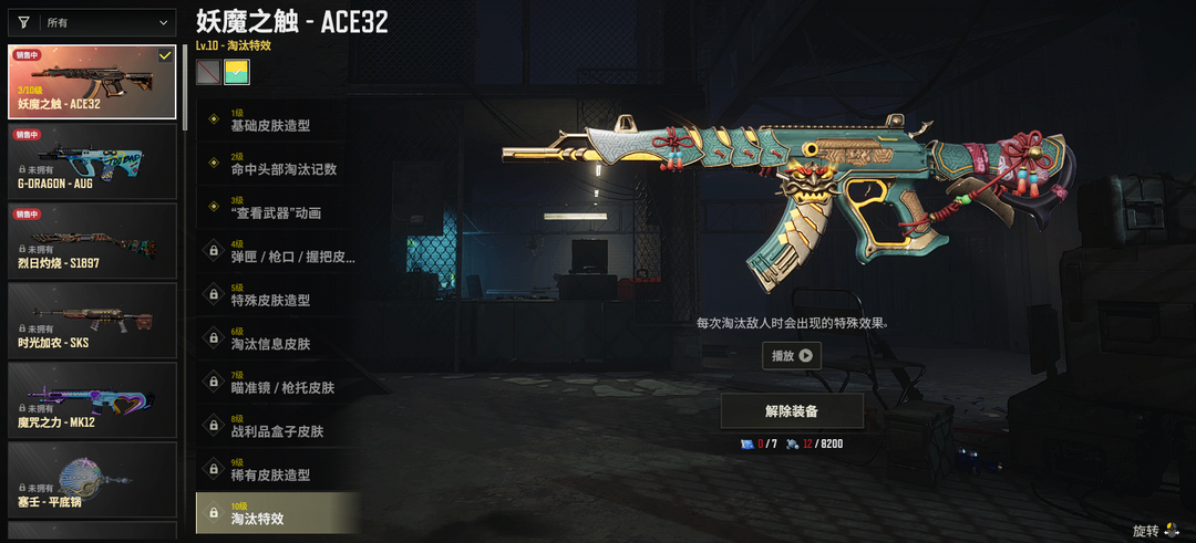 ③级妖魔之触ACE✅黄道猎手M4✅王牌登场M762✅灵魂枷锁AKM✅十字军SKS✅猛虎猎手SLR✅铃