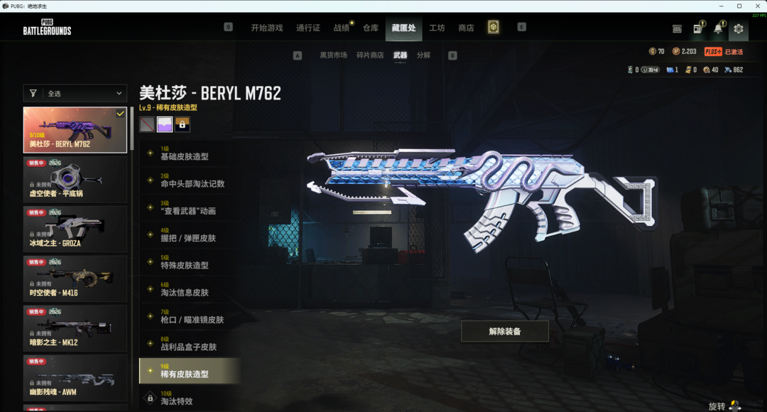 美杜莎9级白异色美杜莎Beryl762解锁满级特效绷带AK粉色烟雾弹虚空行者S1897金面双马尾小熊背包到时可继续玩。