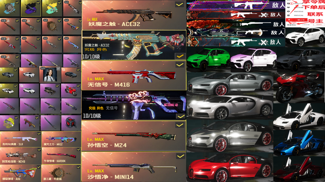 布加迪兰博基尼杜卡迪20满神器✅⑩异色M4无信号⑩异色ACE妖魔⑩M24悟空满级迷你悟净满瀚娜可排位