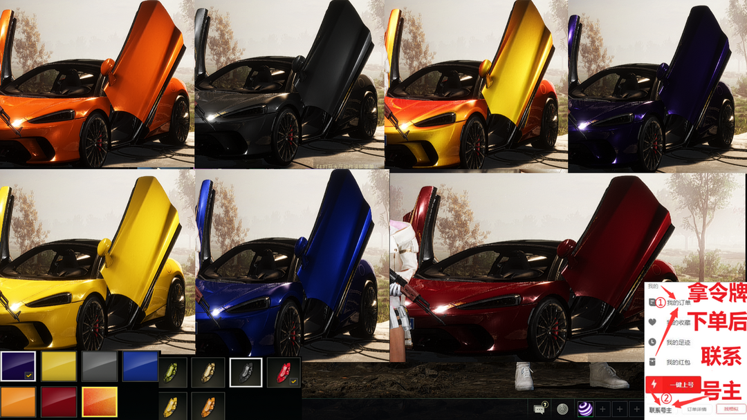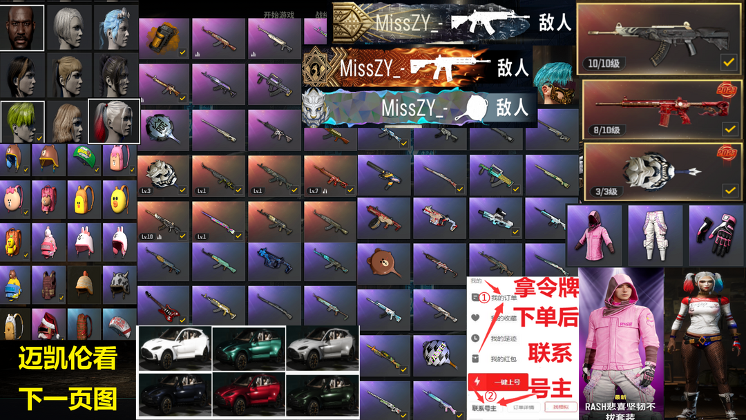 20辆跑车⑩级恶魔ACE⑧级M4朱雀满级白虎锅✅悲喜战神柏林套小丑女✅剪刀门迈凯伦黑鬼兰博基尼可排位