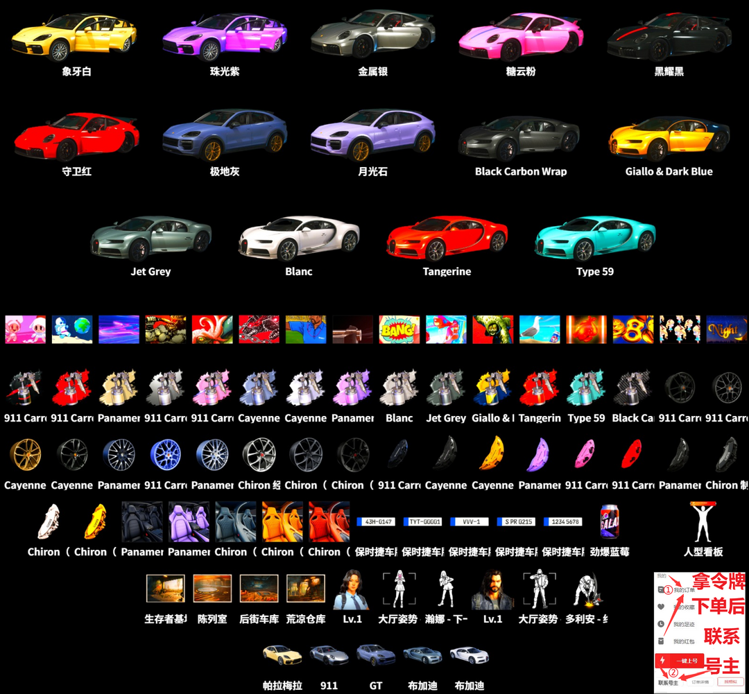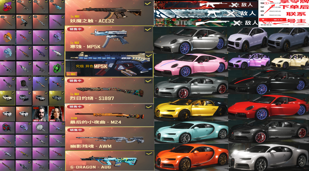 满跑车布加迪威龙保时捷911帕拉梅拉GT✅⑩妖魔ACE满级烈日189MP5M24小夜曲翰娜多利安排位