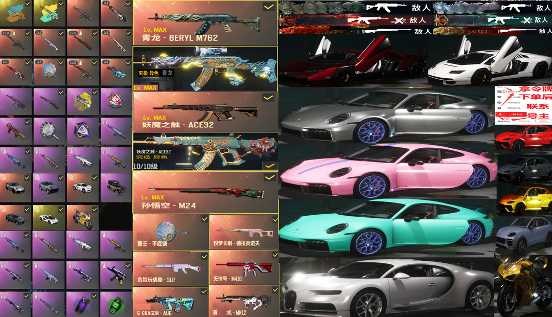 全车保时捷911布加迪兰博基尼杜卡迪✅⑩异色金龙青龙M762⑩妖魔ACE⑩M24孙悟空柏林战神可排位