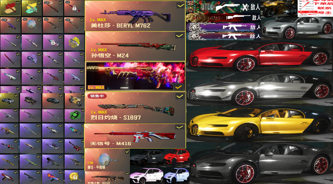 满车神器布加迪威龙兰博基尼✅⑩美杜莎762⑩M24异色悟空⑩烈日189东南亚黑人尼尔柏林杜卡迪可排位