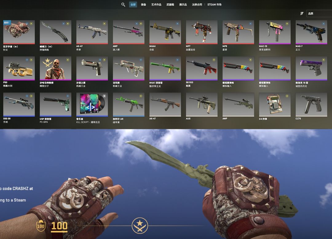 完美C+丨蝴蝶刀丨狂牙手套丨传承AK47丨合纵M4A4丨迷人眼AWP丨机械工业沙鹰