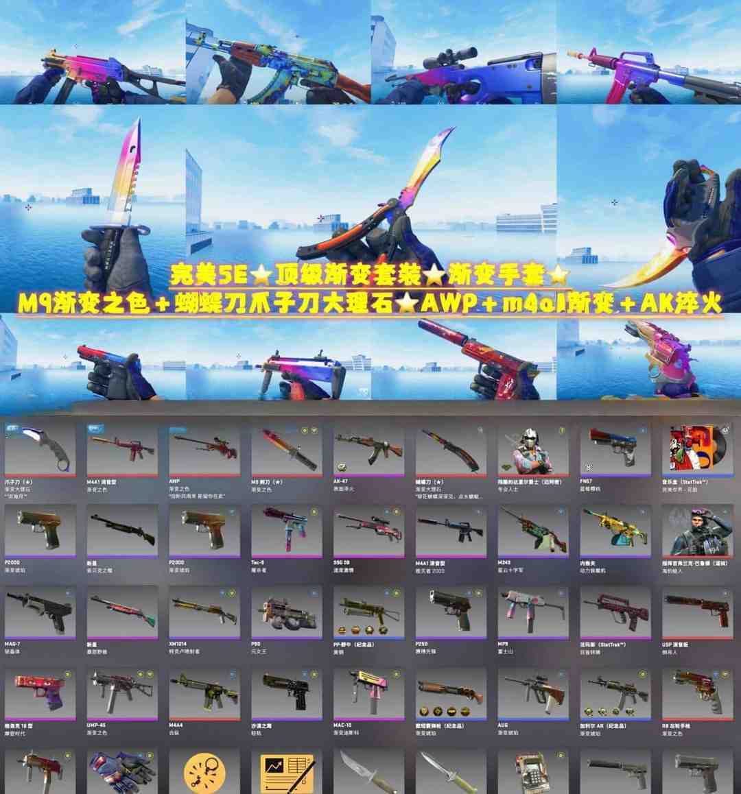 完美5E⭐顶级渐变套装⭐渐变手套⭐M9渐变之色蝴蝶刀爪子刀大理石⭐AWP渐变AK淬火超蓝