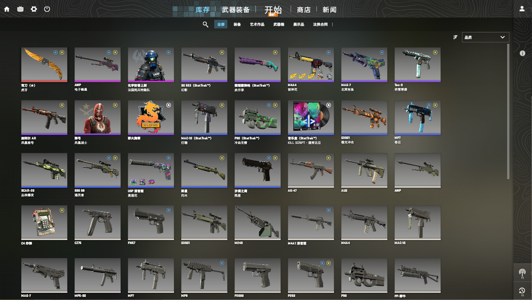 完美老兵丶崭新虎牙弯刀丶awp电子蜂巢丶m4彼岸花丶usp黑莲花丶双探员音.乐盒多主战皮肤
