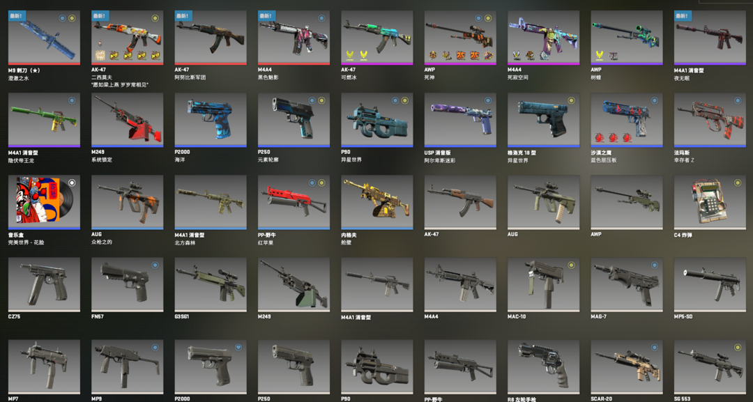 可5E优先完美老兵⭐M9刺刀清澈之水⭐AK二西莫夫黑色魅影可燃冰阿努比斯军团树蛙死神死寂空间音盒