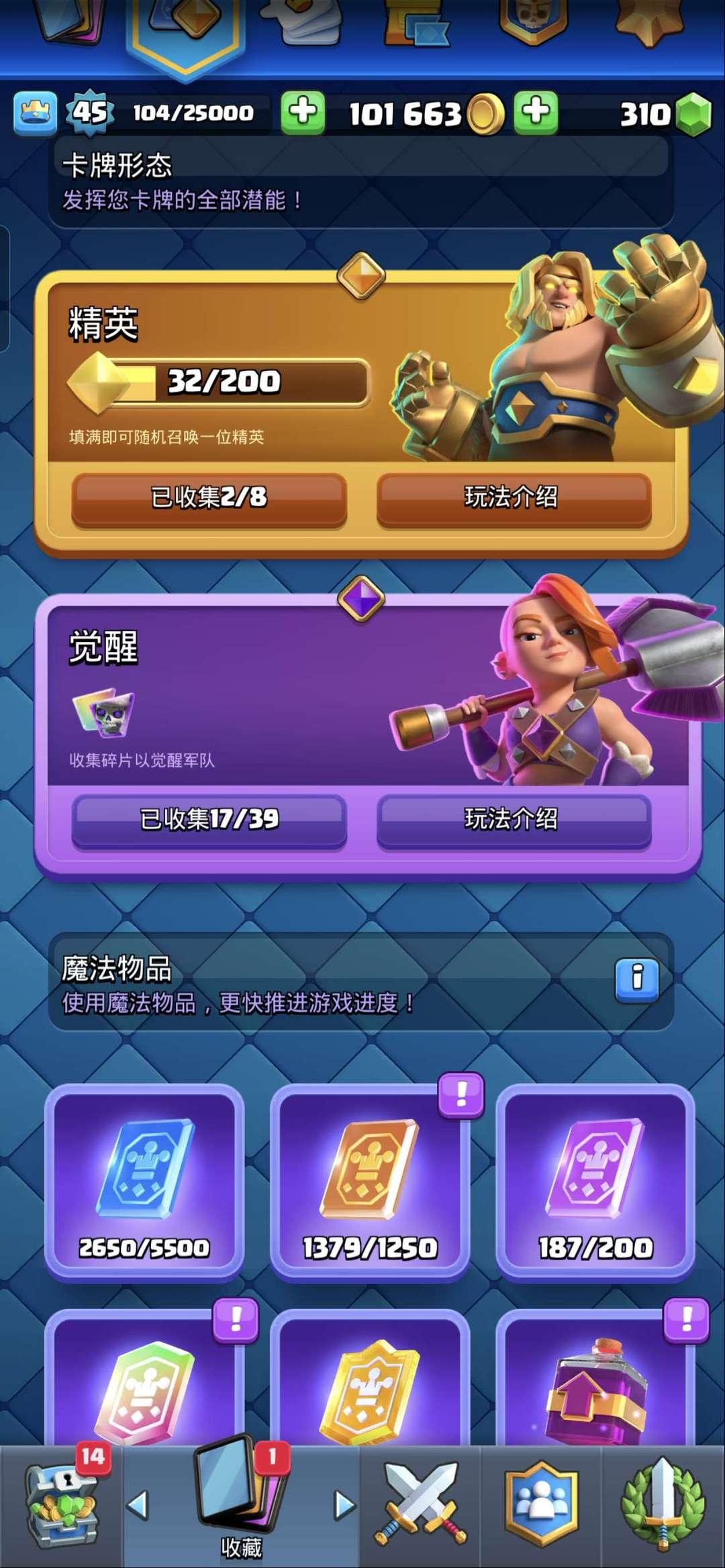 全部卡牌,觉醒卡大部分全有,精英卡牌哥布林已解锁
