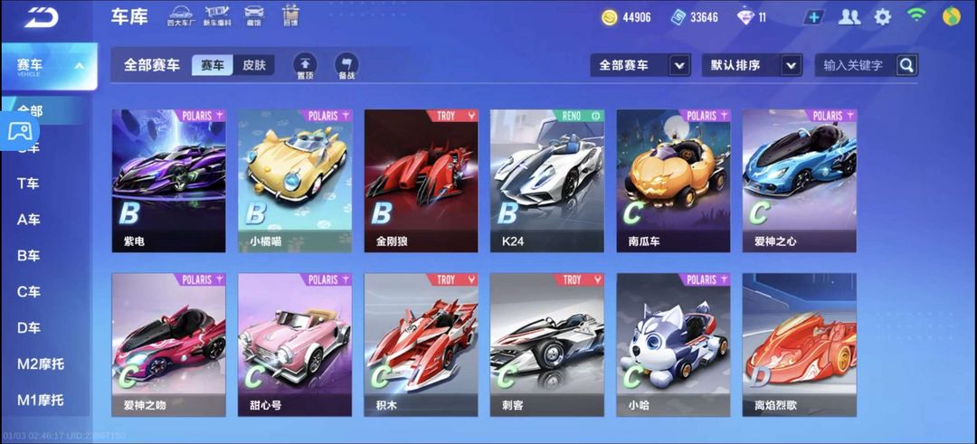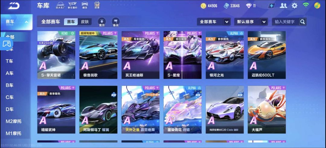 有薛之谦的联名车和皮肤等等A车十一辆,其他赛季限免A车六七辆