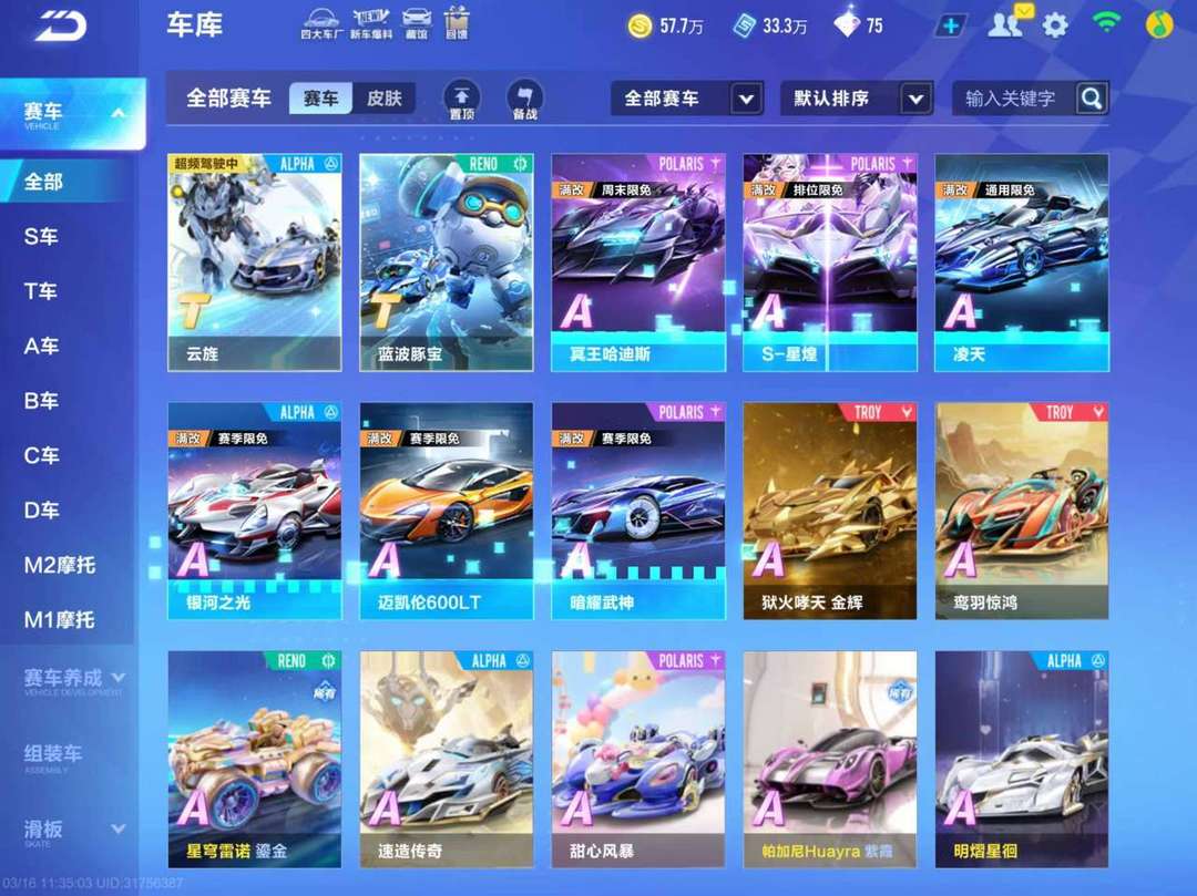 美女号/双机甲/最强马甲云旌/50辆热门A车/超强竞速宠物峻霖神主/玄火之神/潮汐之灵/多座椅等