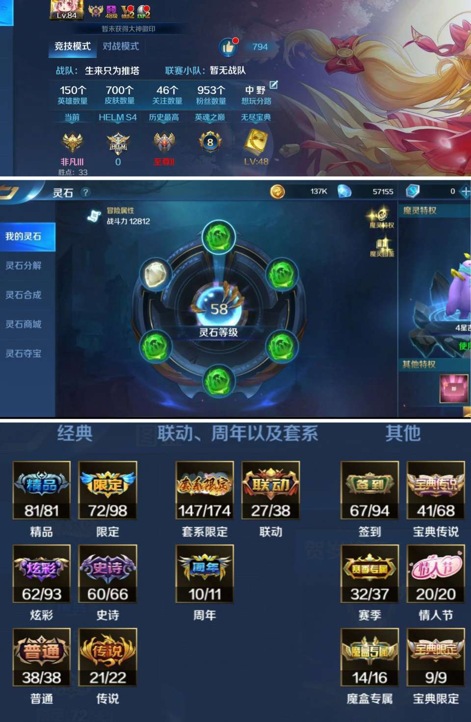 九游客户端♥150英雄♥702皮肤♥144套系♥多联动♥58级灵石♥贵族10♥