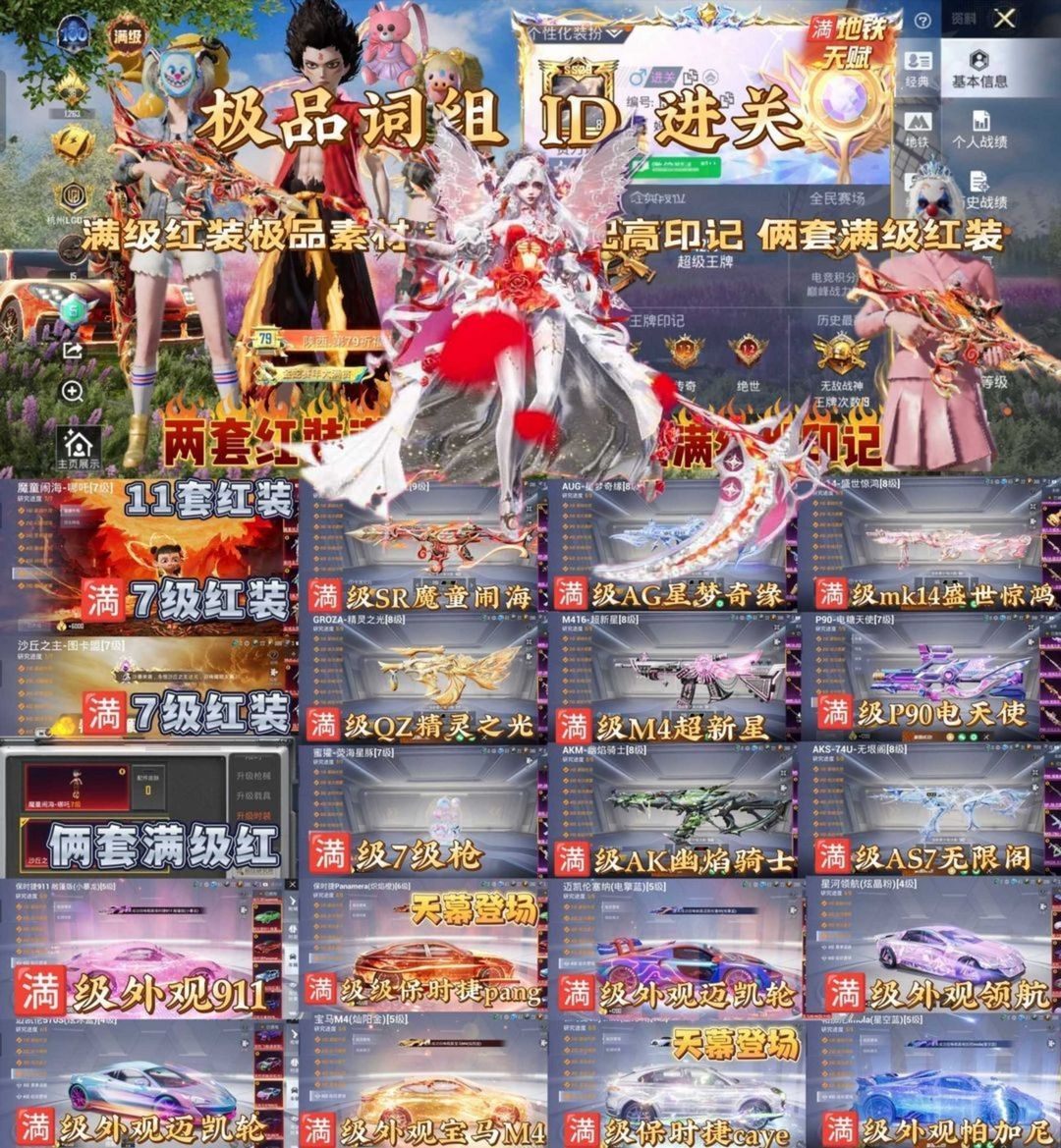 暮色玫影满印记/极品词组ID/俩套满级红/11套红/满级保时捷全套/无限阁/星梦奇缘/老101/