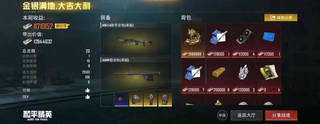 和平精英⭐地铁逃生⭐1个红武器⭐2级声望⭐地图全开⭐