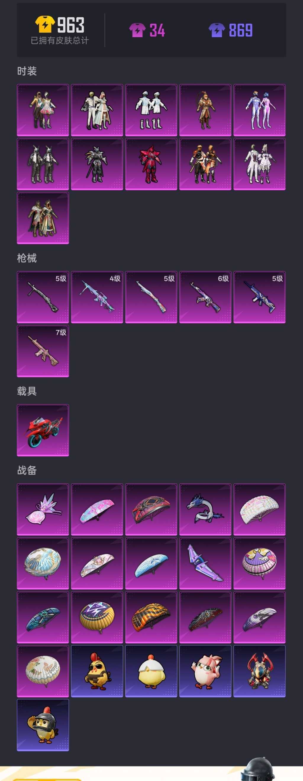 该号男号 禁止分解枪械等级,禁止用军需币,发现秒顶扣押金!!!谢谢宝宝们!!! 套装167个粉装9个 枪皮247个11个 载具皮肤1个 装备285个,三级头27个,三级包44个 降落伞77个,滑翔尾迹7个,伙伴5个,动作64个 请勿开挂,请勿乱撤单~祝您游戏愉快喔~