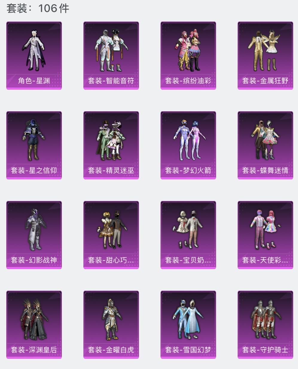 s1老号了,中途退游几年现回归,刚补了星渊和保时捷,之后会持续更新,详细套装看图~ 祝老板游戏愉快,把把第一