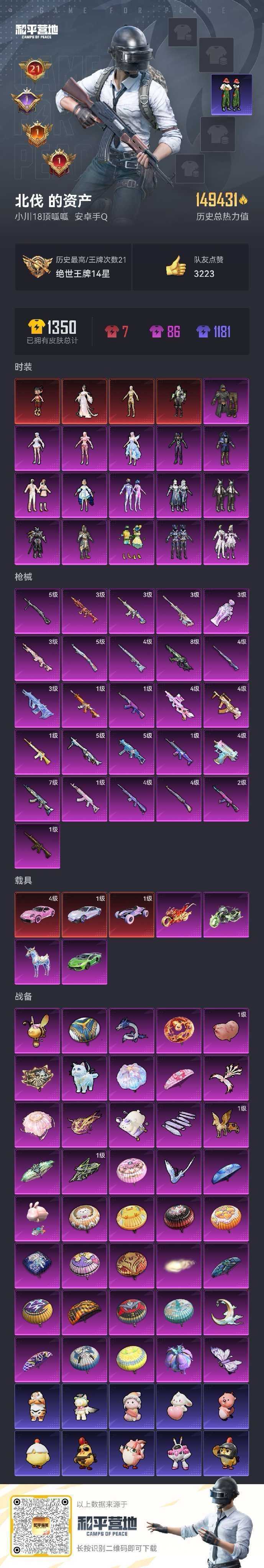 20粉 7载具 270套装 21王牌印记绝世王牌14星历史最高段热力值15万