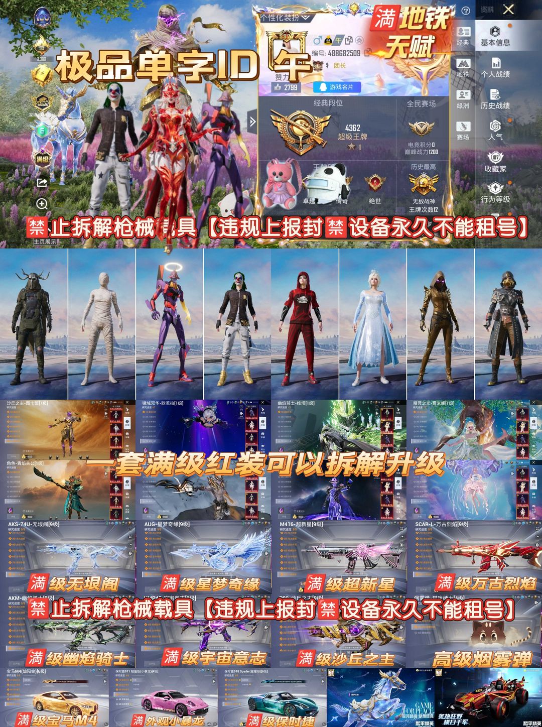 特别声明!!!! 分解枪械永久拉黑不解除 【乱投诉拉黑】有问题/上不去/其他问题/ 特殊需求/投诉没用等问题 账号累计充值超20万!切勿开挂/分解装备/恶意骂人/等等违规行为,发现违规必追查到底(平台登录记录,游戏登录ip手机号 设备串号 充值付款记录不要侥幸现在网警都能调到你的所有行为记录就算盗用他人信息也一样能查到你头上)按账号充值金额=起诉/刑事立案/追责赔偿! 非速玩【非云!本机设备畅玩不卡顿】