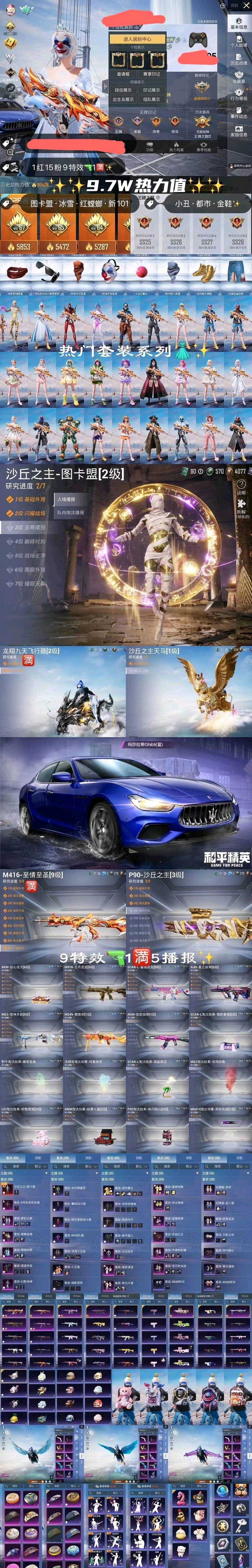 战神框✨满级至情至圣✨2级图卡盟✨小丑都市金鞋子✨红螳螂雪国✨沙丘p90✨粉熊背包