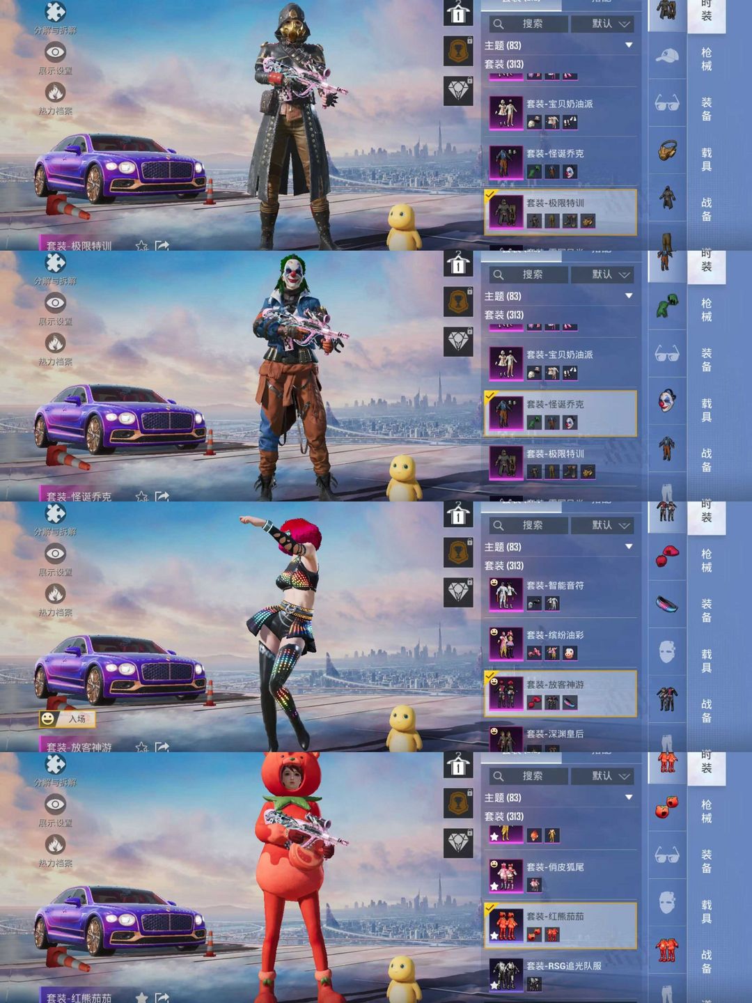 战神框❤️小丑都市赤蝎金鞋❤️极限三姐妹追光服❤️满至情至圣❤️盖世英雄❤️3级宾利23粉14枪4车