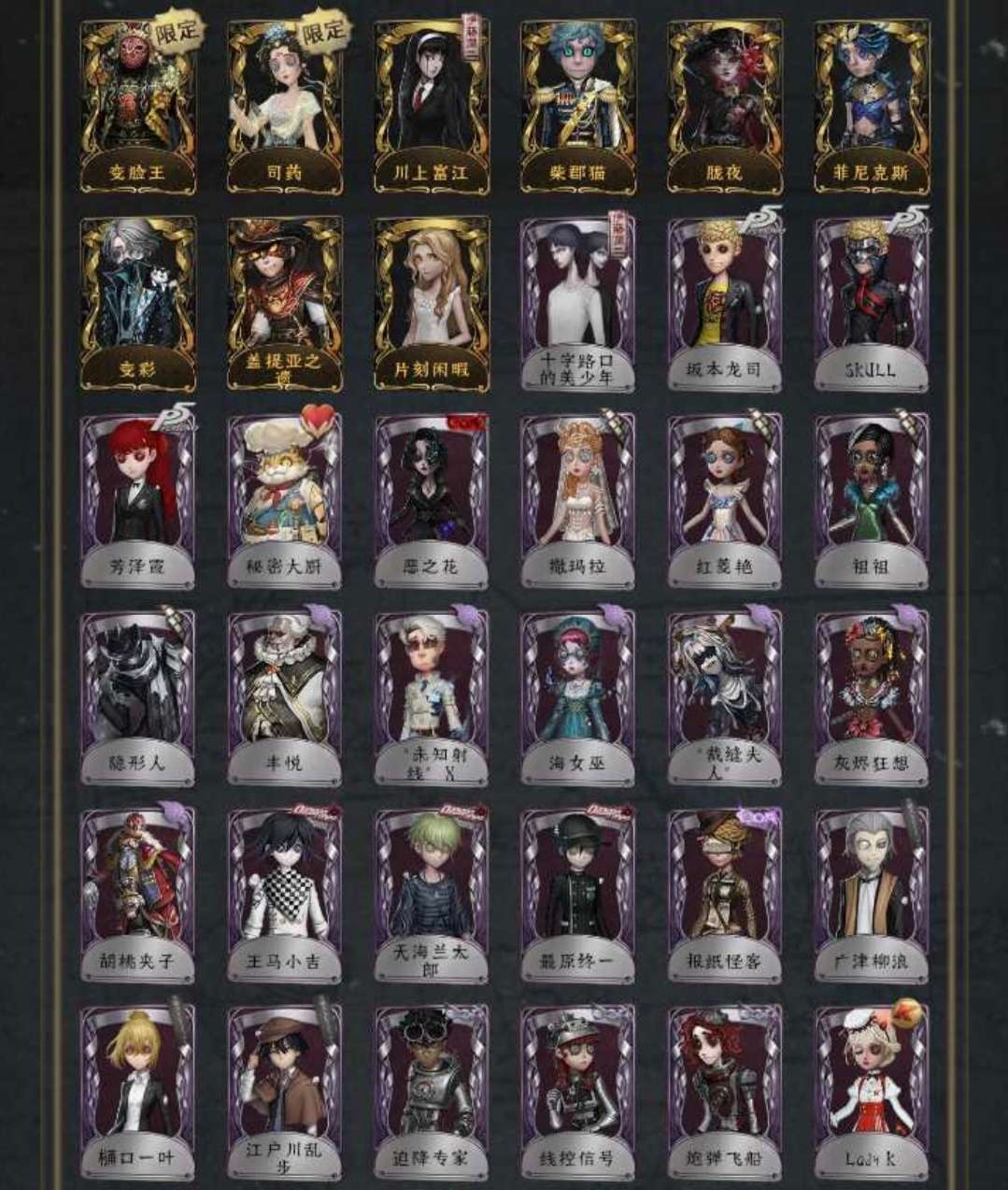 第五人格便宜❤️到时不下❤️川上富江美少年❤司药变脸王❤️菲尼克斯❤️吉瑞尔小羽❤️KFC全❤️胧夜