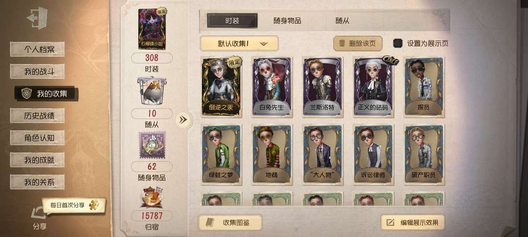 第五人格,网易官服,恒光,石榴碟,恒梦,富江,司药及挂件,流萤及挂件,欧律狄刻,律师小情,