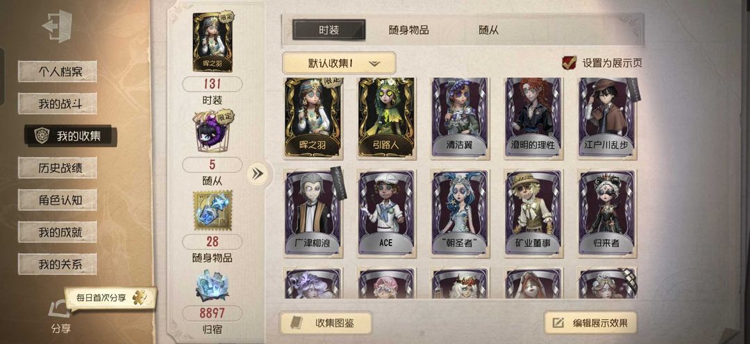 晖之羽,131皮2金,引路人,一些文豪野犬联动挂件,二级已开