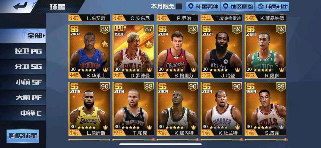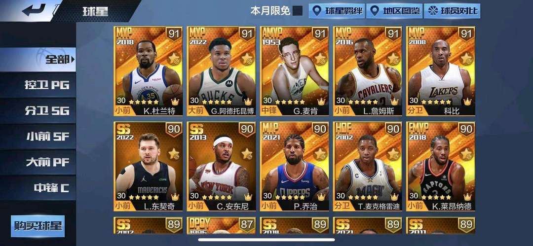 54★可排位★专业★4天选★勇士杜东契奇字母曼巴科安东尼麦迪大本乔治全力詹格里芬罗德曼