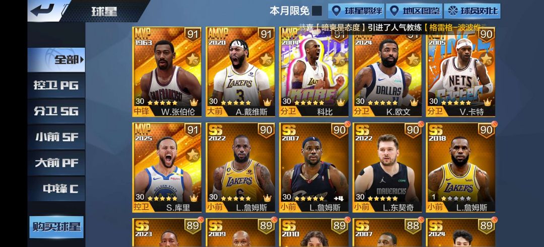 ⭐天选库里⭐天选张伯伦⭐天选浓眉⭐天选新湖詹⭐硬汉科比