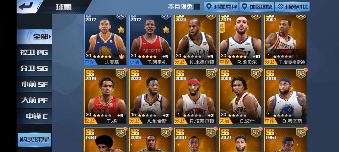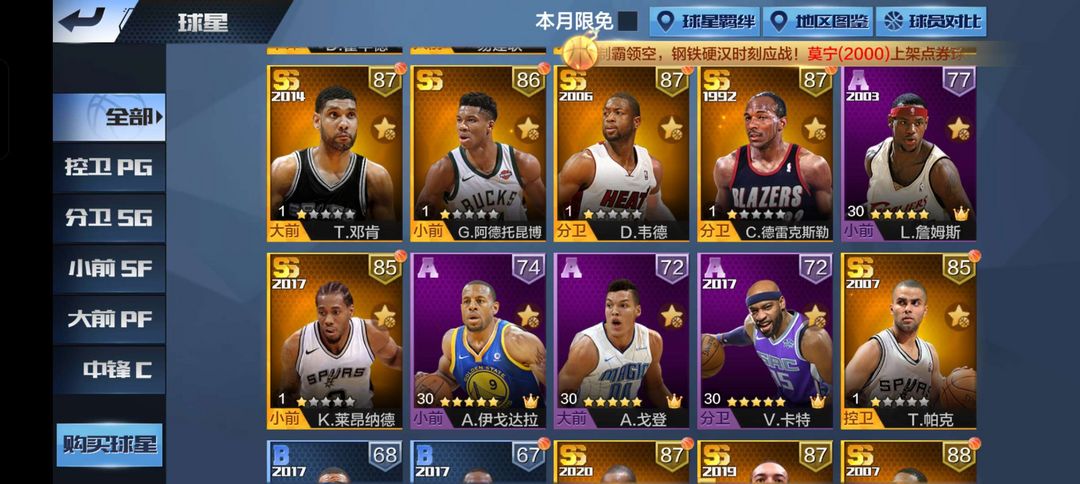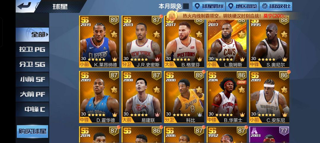 点券船卡/鲨鱼/大本/火花/詹姆斯/jr/全满配球星19区有姚明二专属到时无下线
