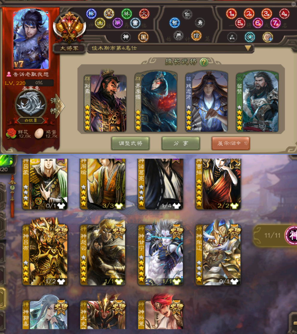 禁止逃跑,逃跑永久拉黑——70SS官方游卡账号:福利大将军◆多巨头◆动刘焉神甘神曹◆神郭神孙策徐荣张仲景张昌蒲◆杜预◆天工皮杨彪◆双动留赞◆动戏子曹纯◆马钧◆偷酒不败界钟会◆明亮千古全◆曹婴羊徽鱼王元姬◆花鬘◆大宝◆动界李儒◆白马司马徽◆祢衡猴子◆神太史慈◆动神赵云◆动谋诸葛亮
