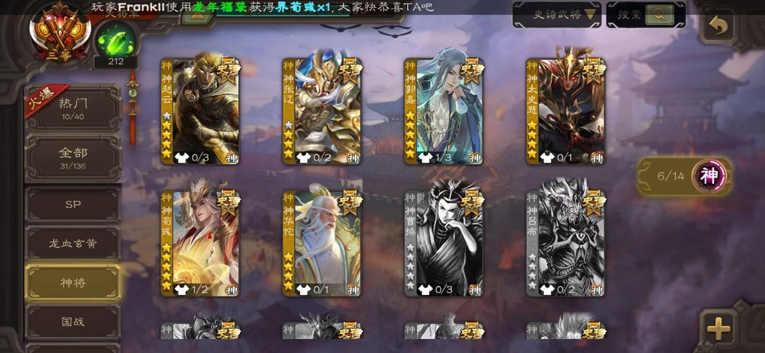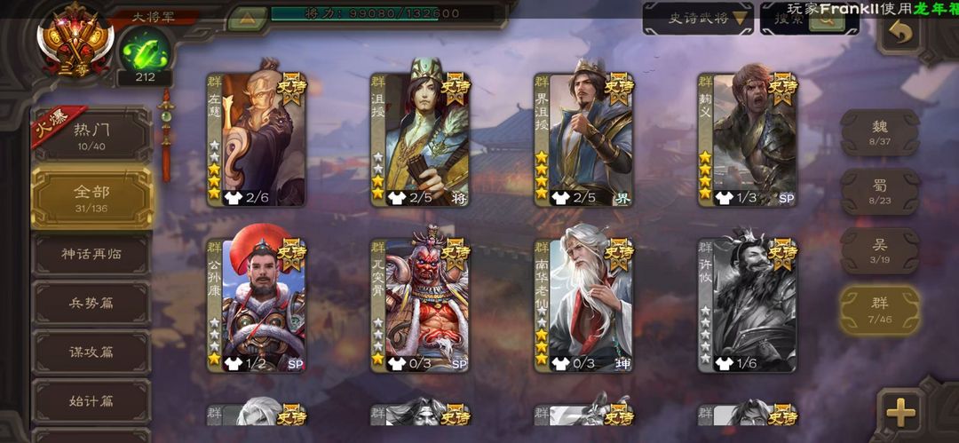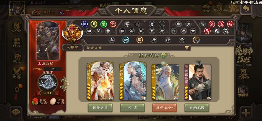 骠骑将军☆动神荀彧动神郭嘉☆谋关羽谋诸葛亮神华佗☆界沮授文鸯☆神赵云神太史慈☆大宝