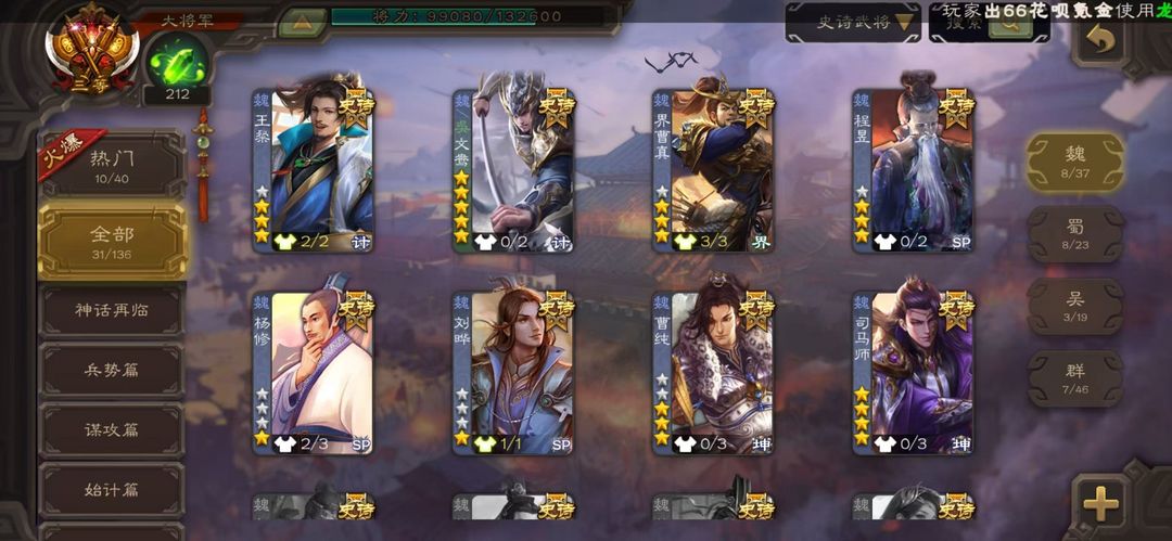 大将军☆动神荀彧动神郭嘉☆谋关羽谋诸葛亮神华佗☆界沮授文鸯☆神赵云神太史慈☆大宝