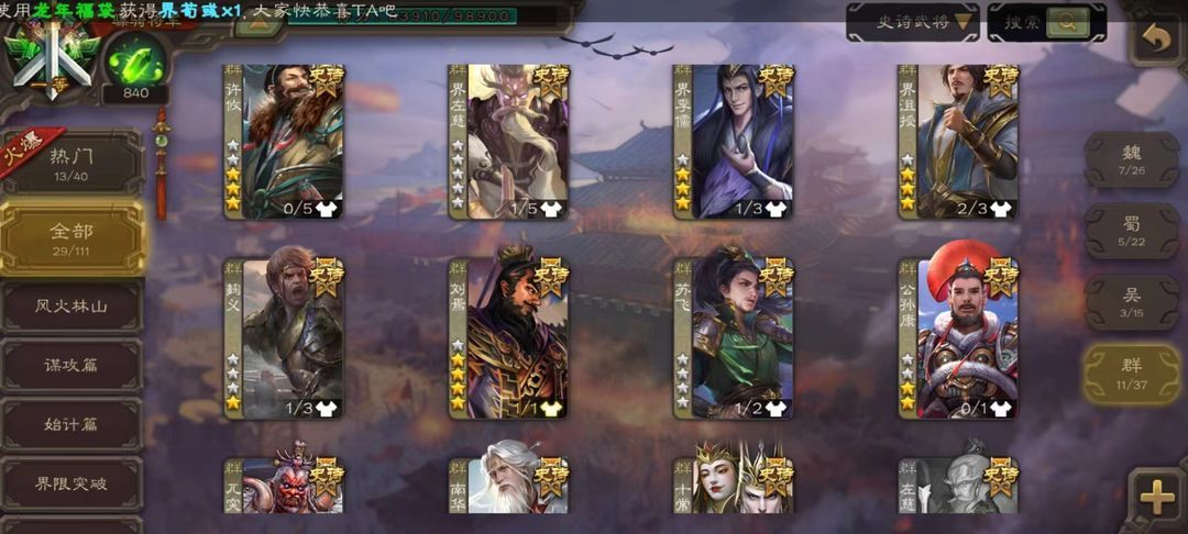 【有点将卡】动刘焉★动神郭嘉★动神甘宁★十常侍★动界钟会29史诗界沮授界左慈界李儒界徐盛