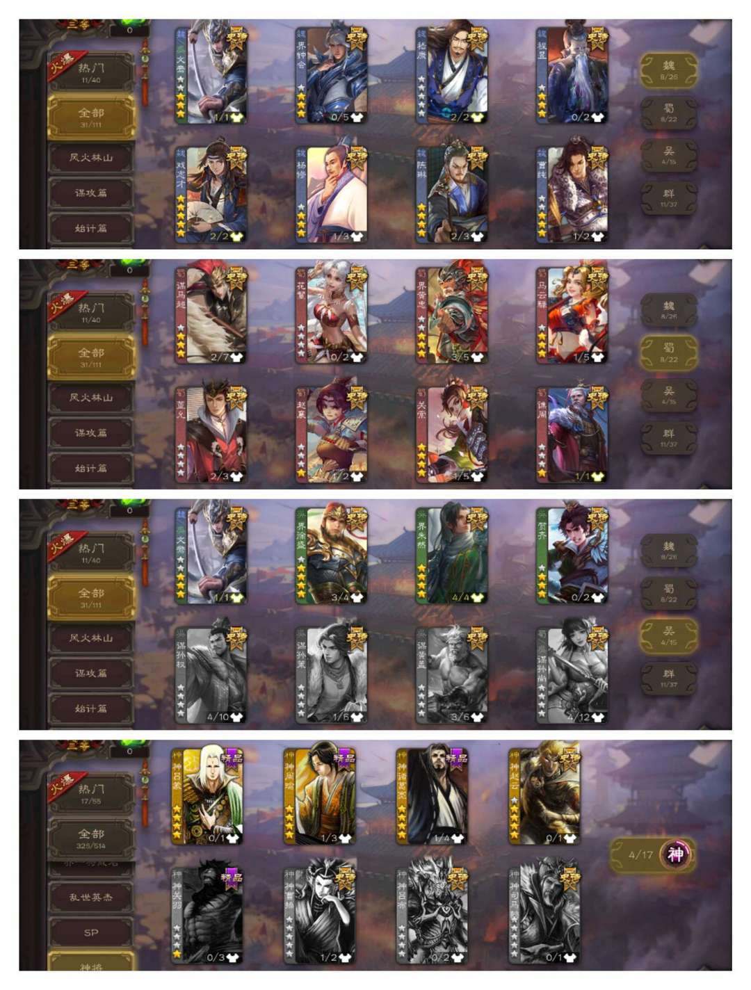 有卡【35史诗大将军】动文鸯动界徐盛动戏志才动界李儒动星甘宁动界朱然+界钟会神赵云司马徽