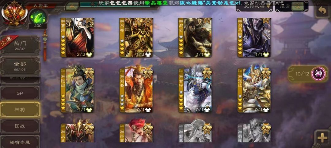 动态神司马懿【伪全扩一等大将军22万将力全神103史诗V19】倚星折月神郭嘉刘焉全巨头动谋曹丕神鲁肃