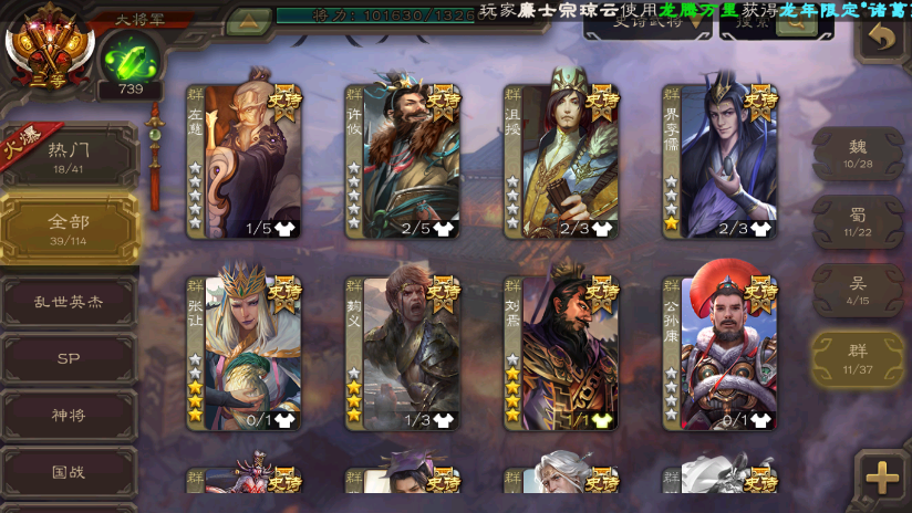 有点将卡【大将军】动刘焉-动神郭嘉-回廊动文鸯回廊界钟会动界徐盛大宝回廊谋黄忠裴秀回廊动神孙策神赵云