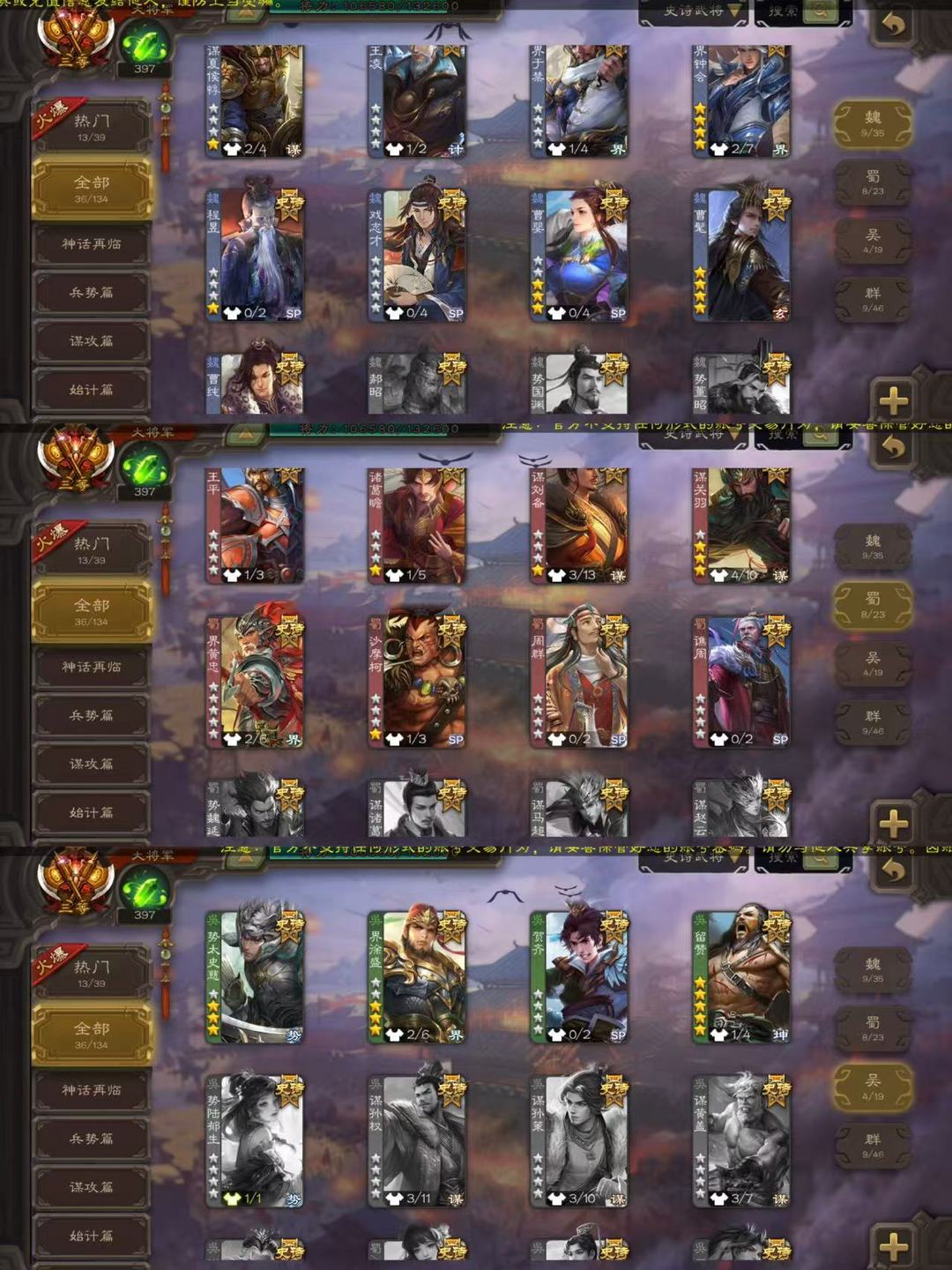 有卡36史诗大将军✔曹髦谋关羽势太史慈界徐盛势于吉神司马懿神太史慈✔麹义界钟会戏志才谋夏侯惇