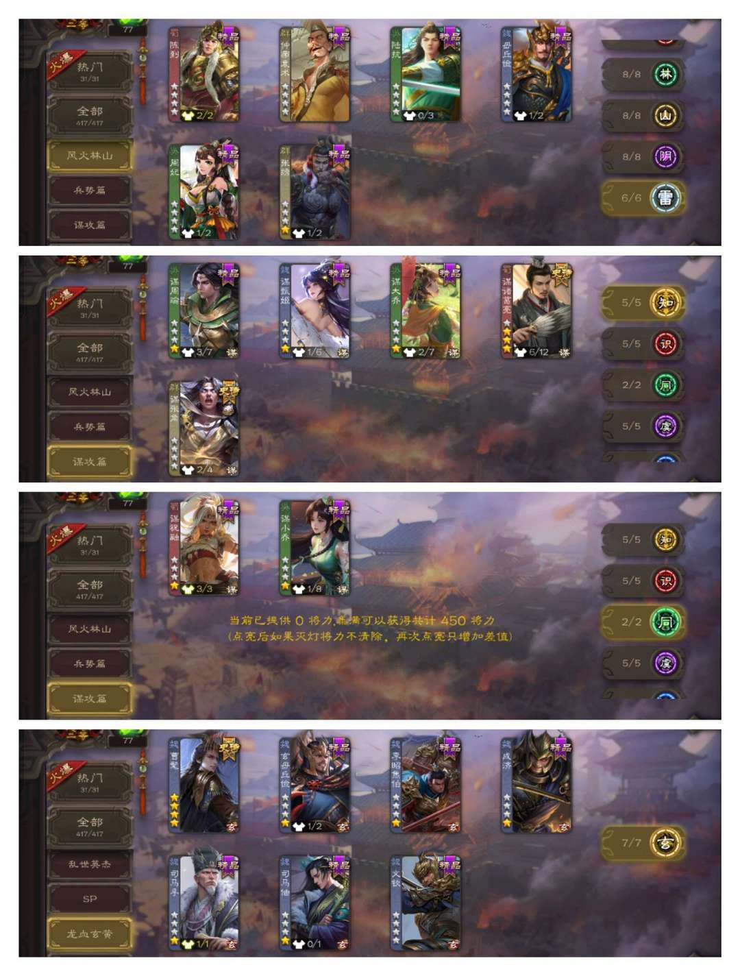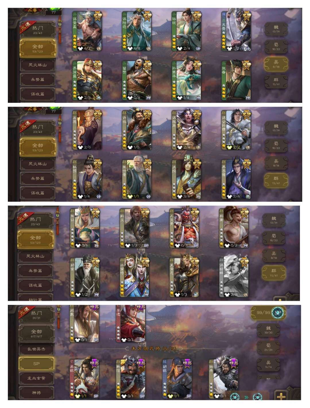 有卡【二等大将军】双形态动文鸯*回廊动神曹操动神孙策动谋黄忠动孙寒华动神司马懿*曹髦张奋神鲁肃十常侍