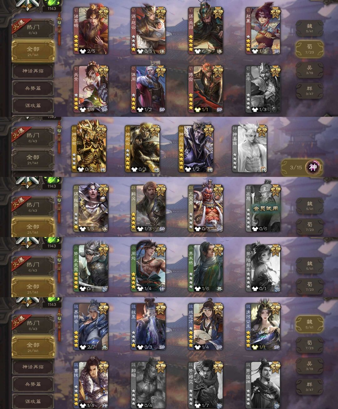 动神司马懿 动谋关羽 势太史慈 动清河公主 动界钟会 动周处 动诸葛瞻 动麹义 戏志才 关索 傅佥 神赵云 神吕布 曹纯