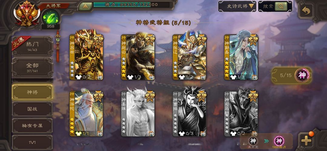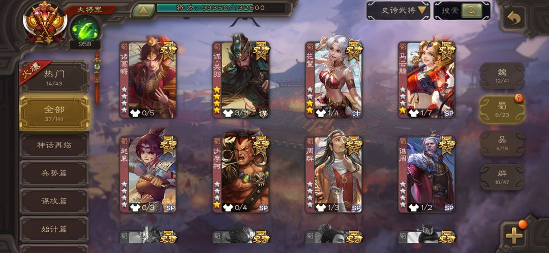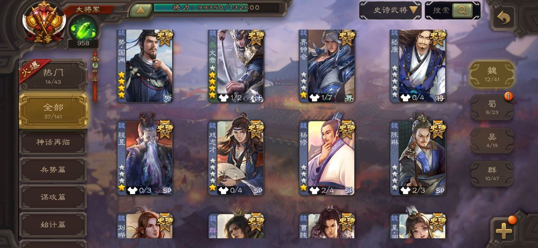 大将军,势国渊,动神郭嘉,笮融,动孙寒华,回廊文鸯,回廊神华佗,动司马昭,动谋关羽,回廊动大宝,回廊麹义,阎象,友徐庶,动神赵云,神吕布,戏志才,界钟会