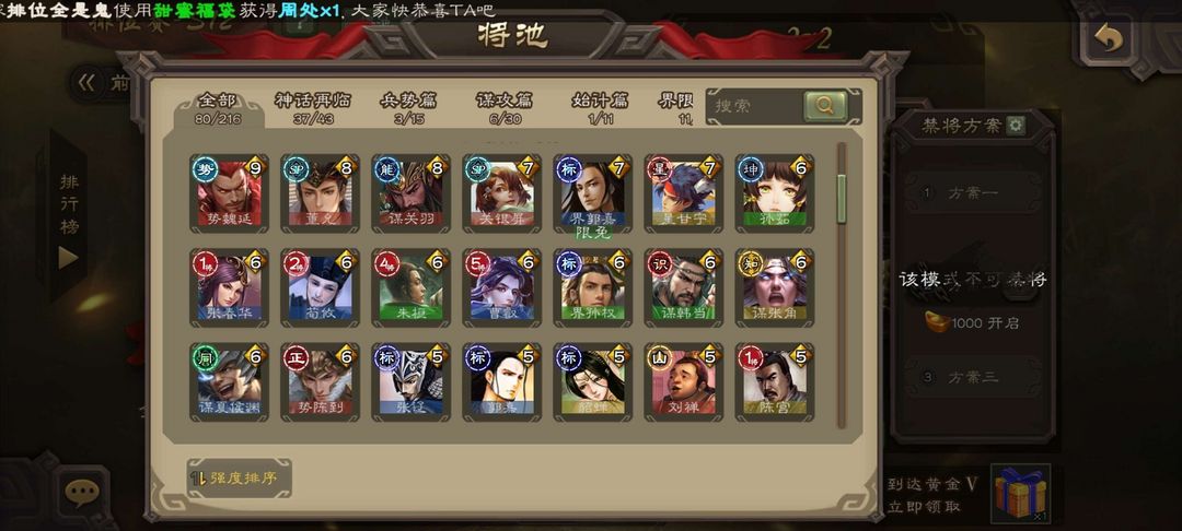 80排位武将★15史诗双形态谋关羽势魏延动界徐盛圣垂千古谋关羽回廊谋关羽星甘宁动界钟会动花鬘嵇康董允谋张角麹义星黄忠关银屏孙茹张春华荀攸朱桓曹叡界孙权谋韩当谋夏侯渊势陈到陈宫张翼崔琰谋卢植谋周瑜势夏侯尚鲁芝