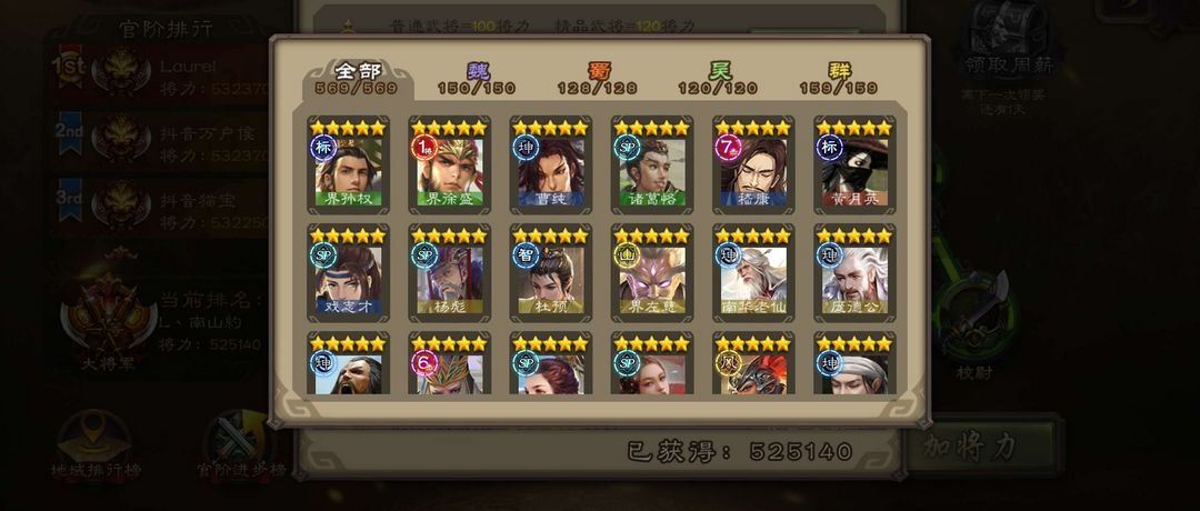 全武将满星,除了大元帅就只有这个号是全武将满星,后期出新将还会继续满星,这个是其他号无法具备的。