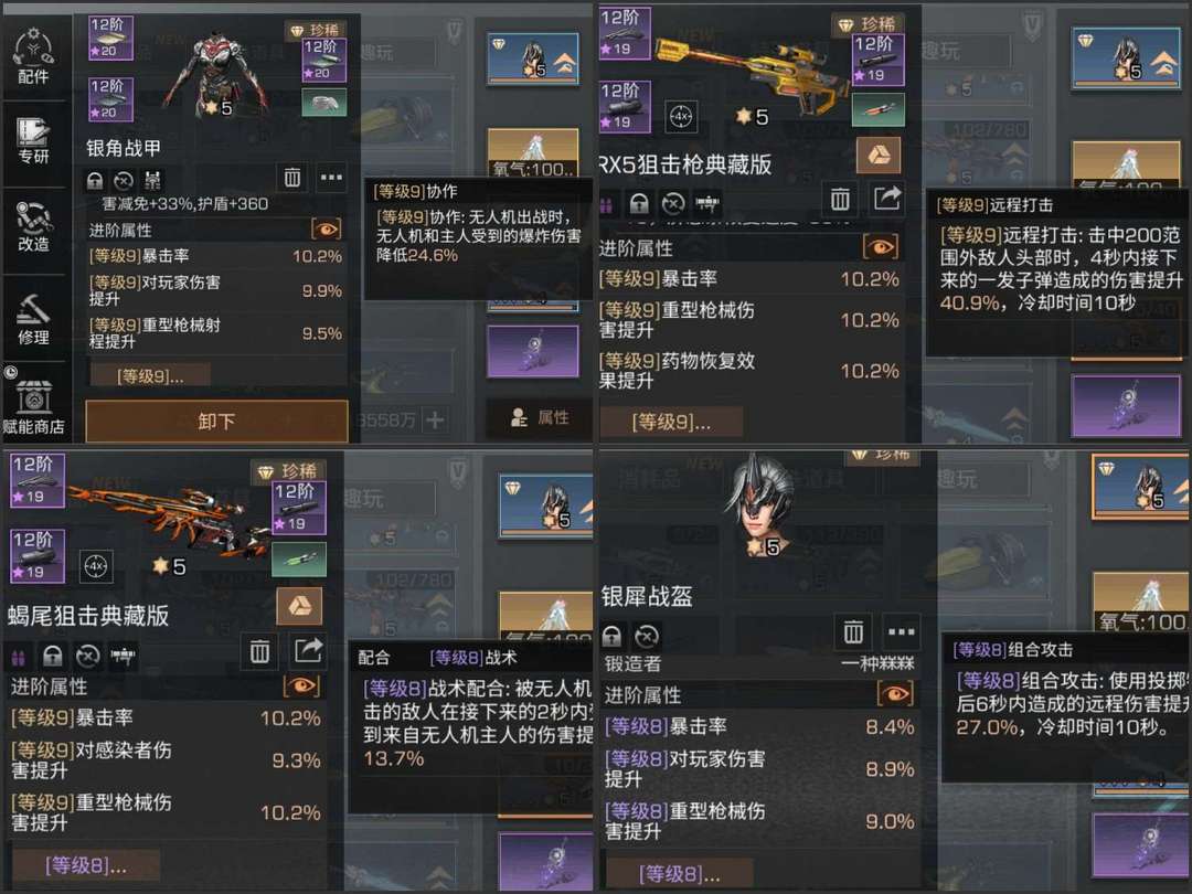 区一狙击手,30庄,9图谱,12火12酸弓12极光12冰炮,配件全12阶,满专精