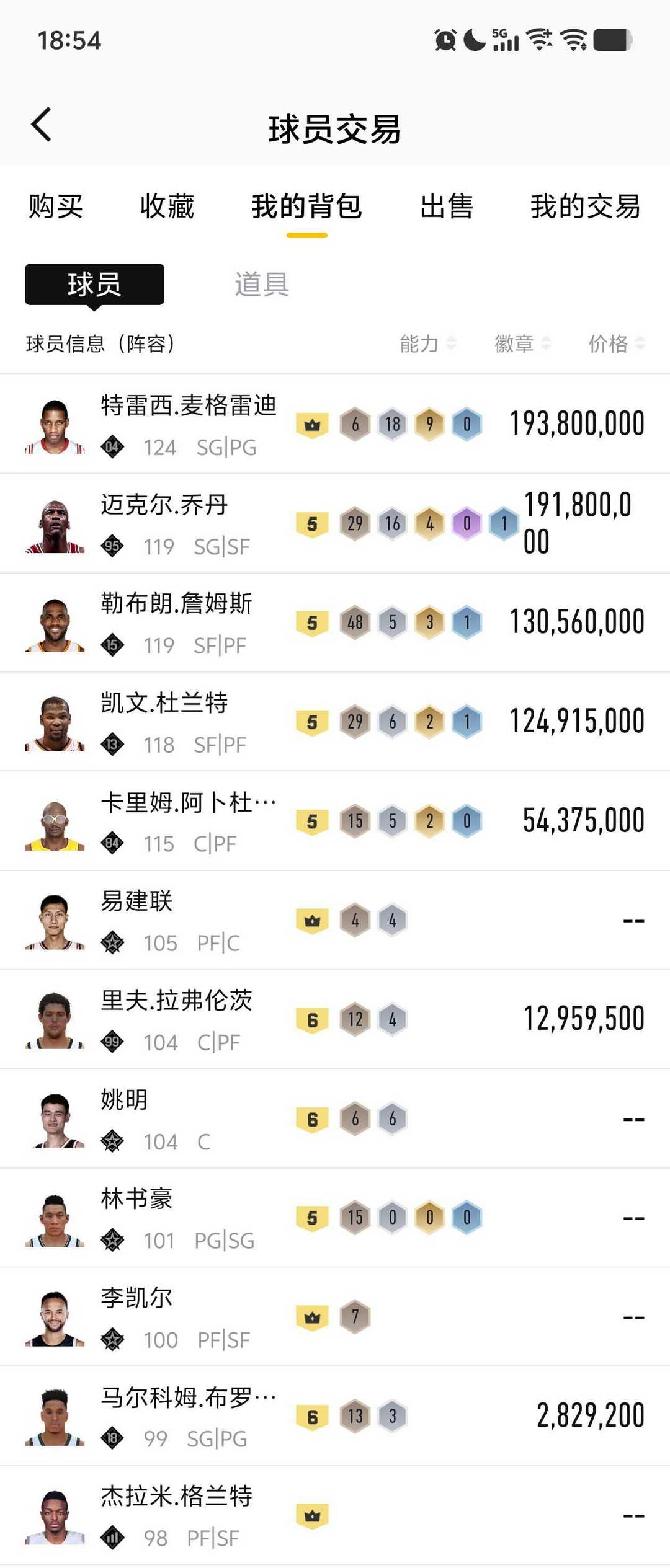 五陈列室名人堂✨满麦迪✨新神5迈克乔丹⭐5詹姆斯⭐5杜兰特⭐5天勾贾巴尔⚡掘金拉弗伦茨⚡雄鹿布罗格登
