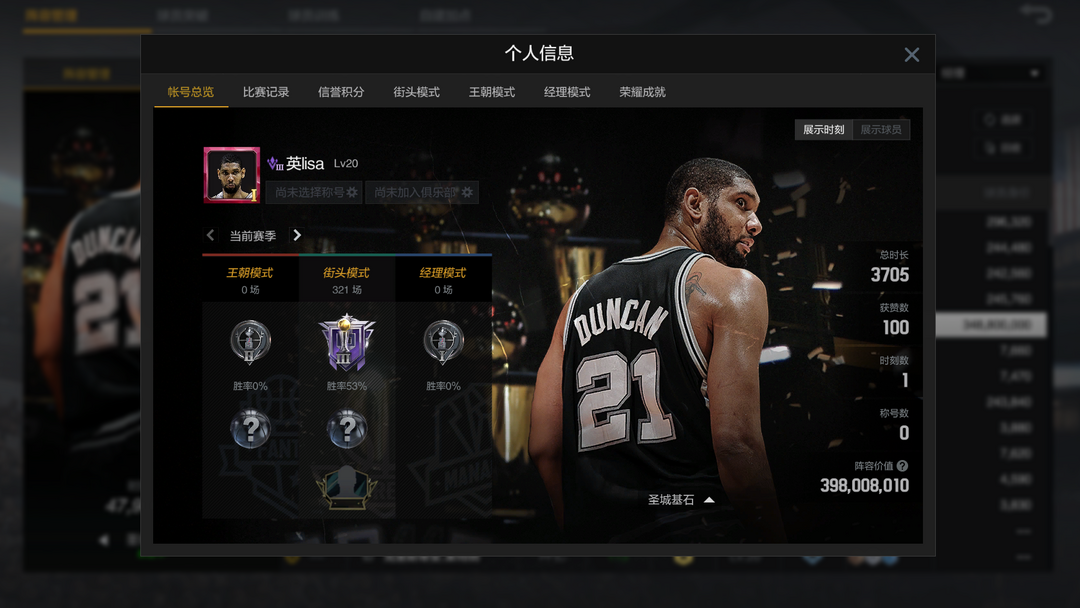 ⭐可排位,段位:巨星⭐六突04邓肯,带时刻圣城基石⭐最新陈列室全能邓肯⭐