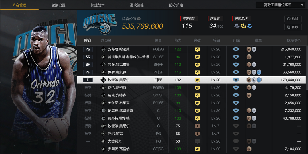 全满突✦哈达威✦奥尼尔✦班凯罗,魔术队套,欢迎体验!租完可以给个好评哈!信誉积分出来了还请各位租号的老板们注意下自己的出租时间,谢谢配合,好人一生平安! 本账号租用期间游戏内禁止事项 (租客若违反轻则拉黑,情节严重的必定会追究其法律责任 :