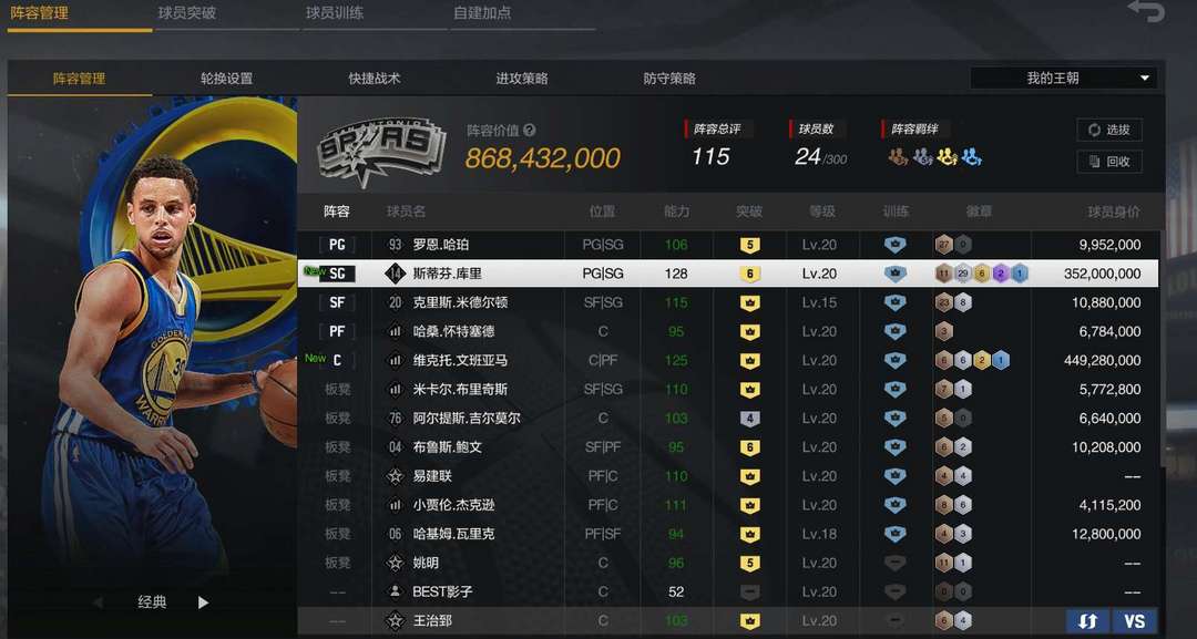 信誉分可排位/6突新陈列室库里/金徽章10突文班亚马/历史巅峰米德尔顿/完美王朝阵容