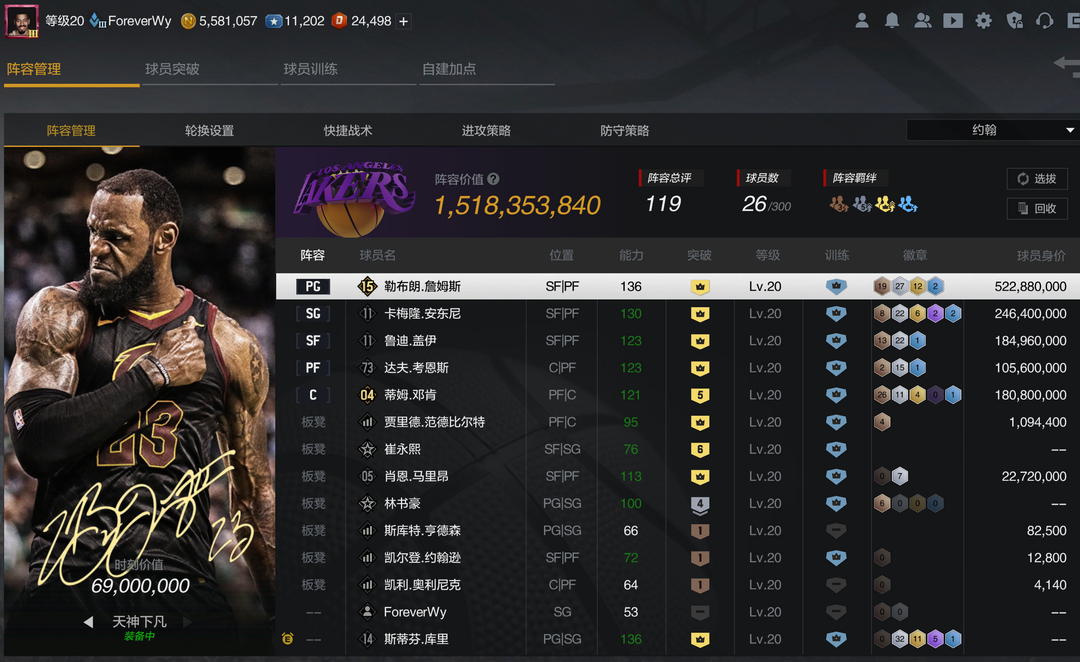 10突大时刻詹姆斯+安东尼+邓肯+盖伊考辛斯,可排位,多时装!