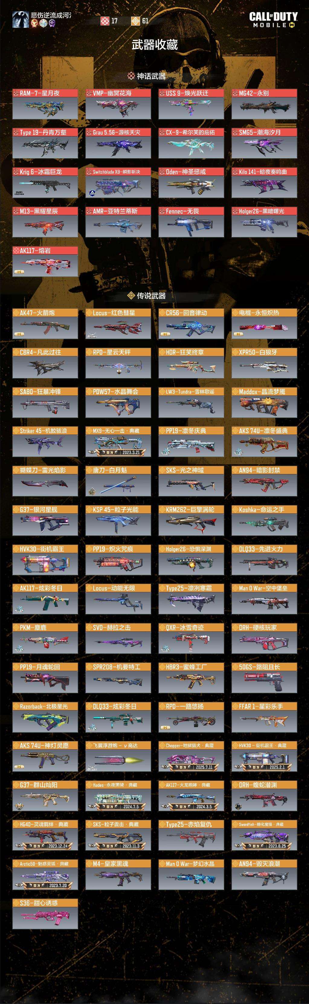 16个满级神话,具体情况看备注。